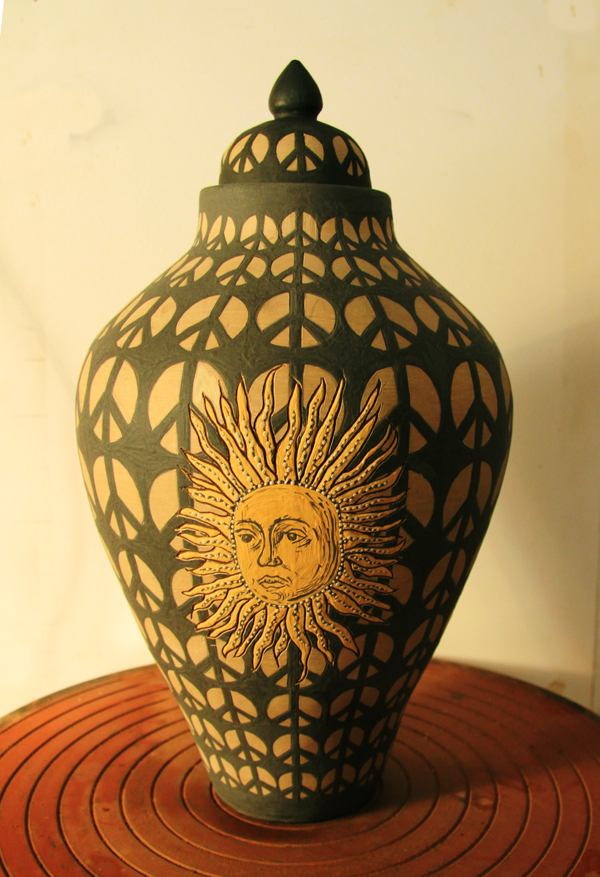 Just finished this one, it is still in plastic as I am not sure about the face yet, I need to make her more optimistic, but that is easier said than done! This is a very small jar of about 10 inches in height. Peace to everyone everywhere.
